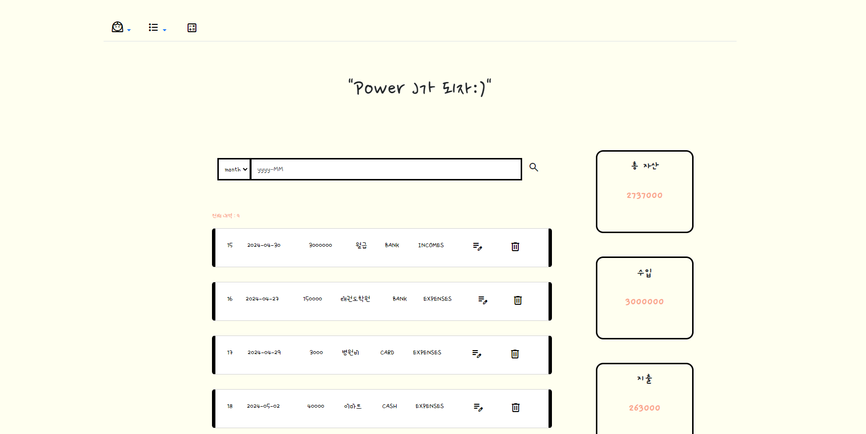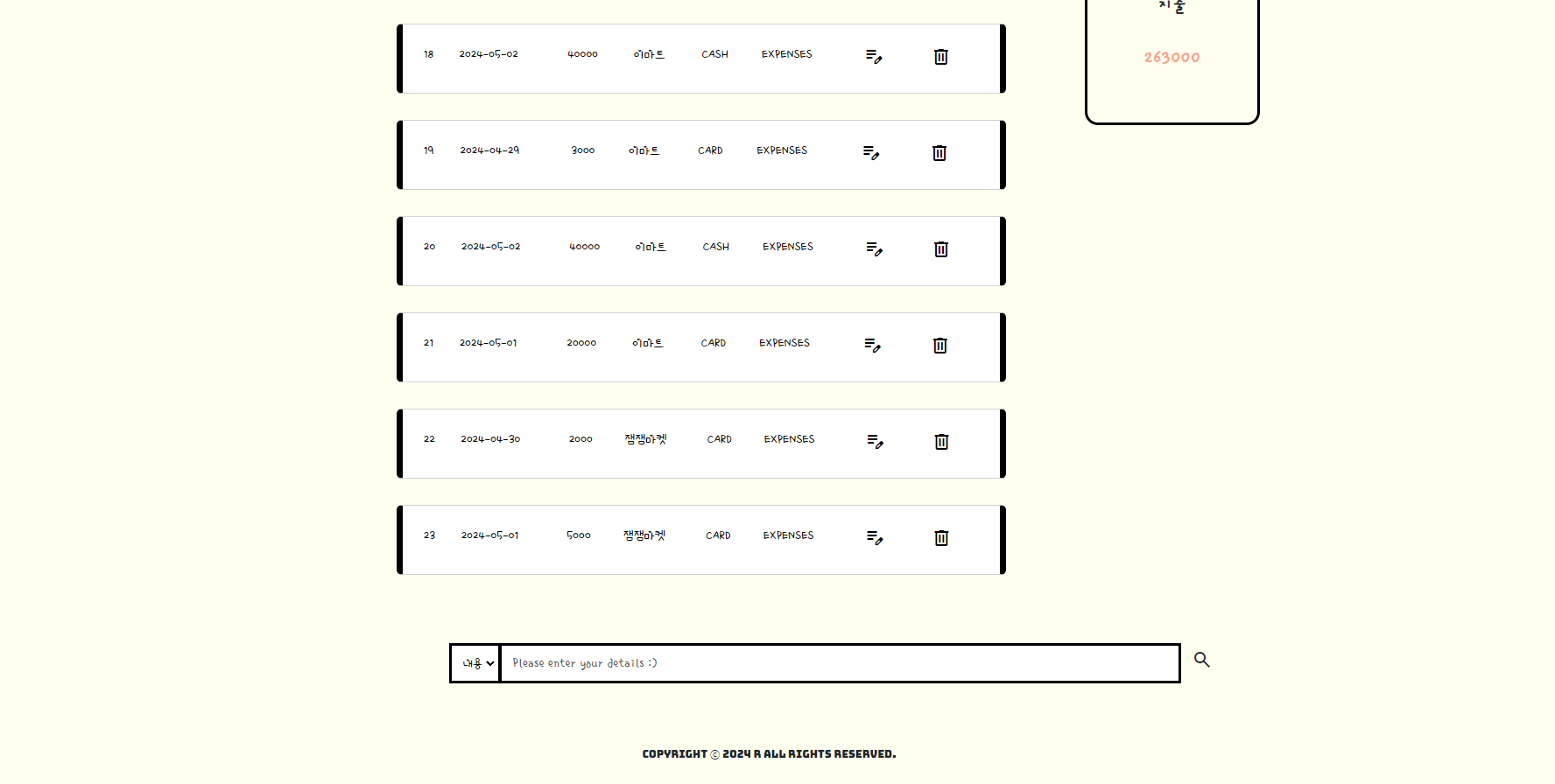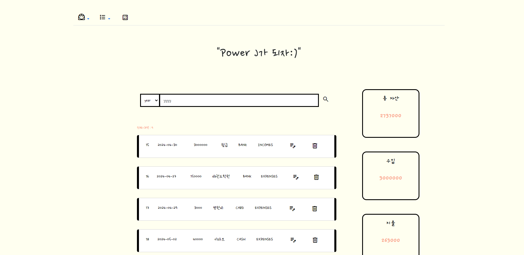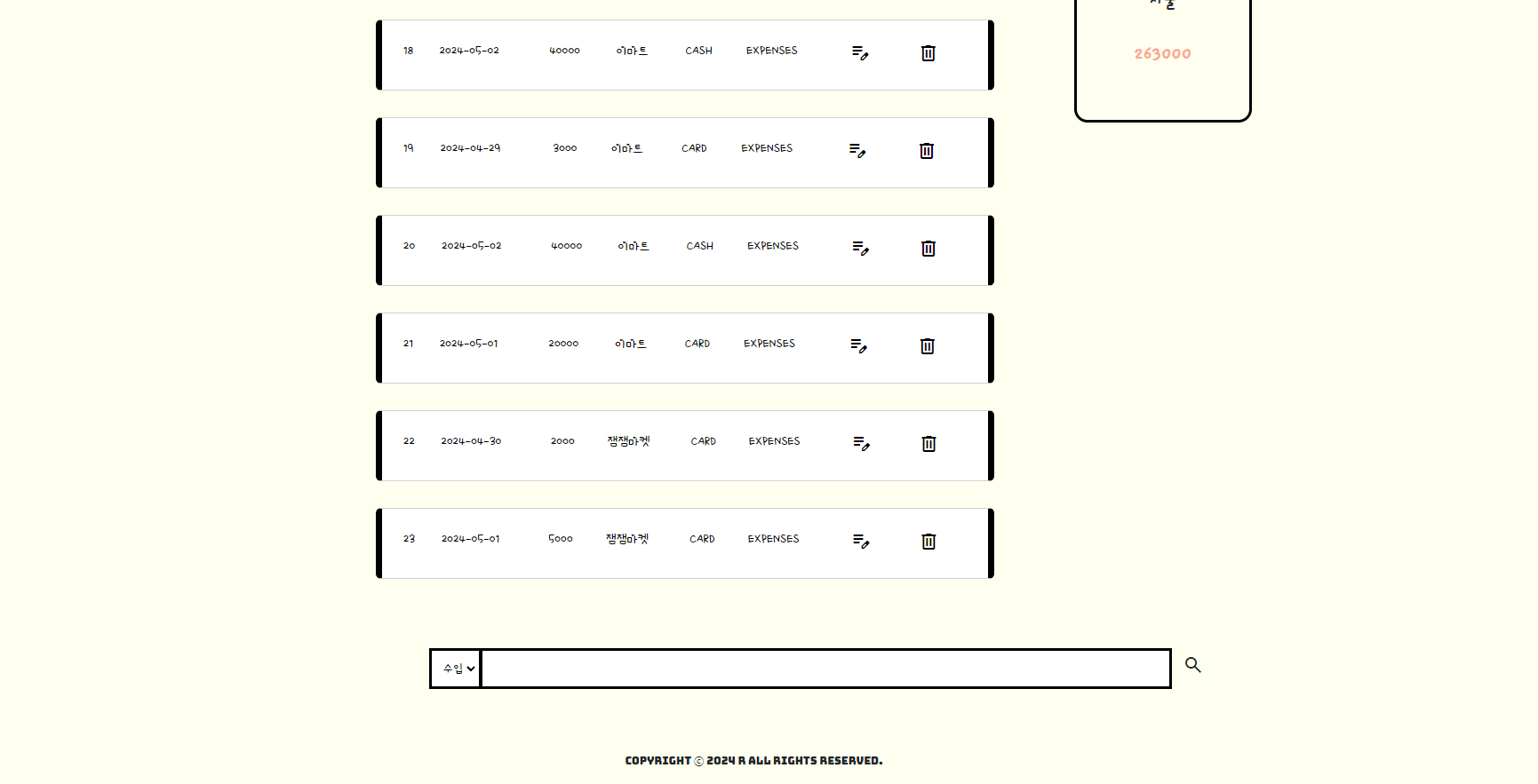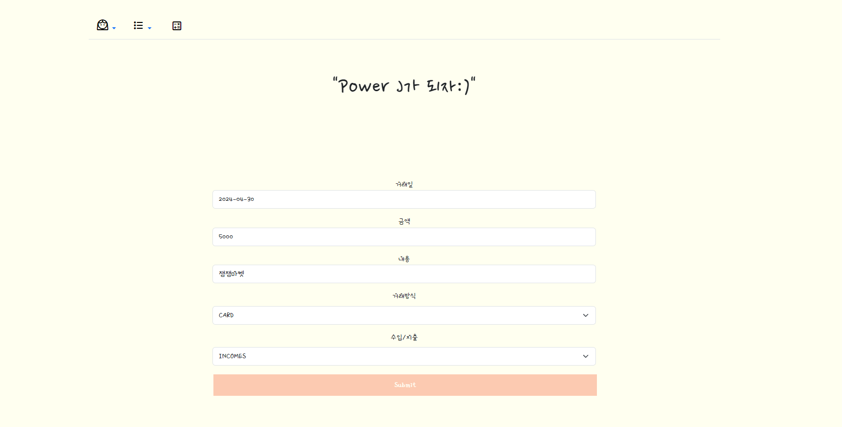 그 이외에 수입, 지출, 카드, 현금, 은행을 선택했을 때는 키워드 값을 각 타입에 맞게 지정된 값으로 변경하고 폼을 제출 할 수 있게 설정하였다.